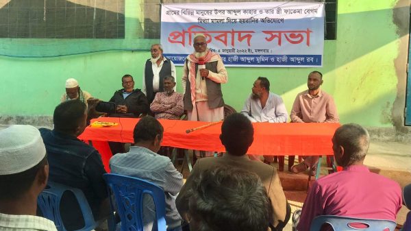 বিশ্বনাথে স্বামী-স্ত্রীর করা মিথ্যা মামলায় অতিষ্ঠ প্রবাসীসহ গ্রামবাসী, প্রতিবাদ সভা।