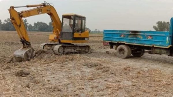 বগুড়ার ধুনটের ভান্ডারবাড়ী শুটিংস্পটের পশ্চিম পাশে চলছে আবাদি জমি কেটে পুকুর খনন।