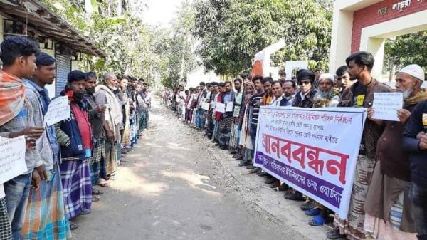 সিংড়া হাতিয়ান্দহ ইউপি নিবার্চনে ভোট কারচুপির প্রতিবাদ ও পুনঃরায় গণনার দাবিতে মানববন্ধন।