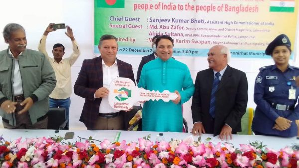 লালমনিরহাটে ‘আইসিইউ সম্বলিত এ্যাম্বুলেন্স’ উপহারের চাবি হস্তান্তর অনুষ্ঠান।