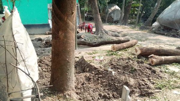 চুকনগর মাগুরাঘোনায় নব নির্বাচিত ইউপি সদস্যের নেতৃত্বে সরকারী গাছ কাটার অভিযোগ ।