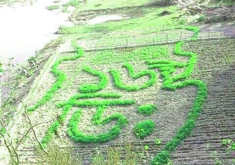 ধান চারা দিয়ে বাংলার মানচিত্রে লেখা ১৬ই ডিসেম্বর ।
