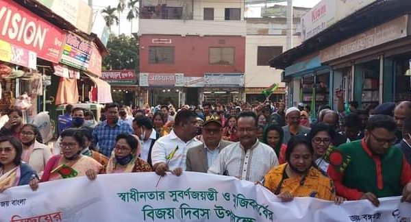 লালমনিরহাটে স্বাধীনতার সুবর্ণজয়ন্তী ও মুজিববর্ষের বিজয় দিবস উপলক্ষ্যে বিজয় শোভাযাত্রা।