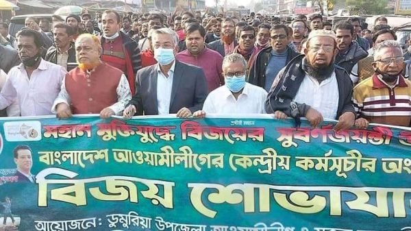 মহান মুক্তিযুদ্ধে বিজয়ের সুবর্ণজয়ন্তী উপলক্ষে ডুমুরিয়ায় বিজয় র্যালী ও শোভাযাত্রা অনুষ্ঠিত ।