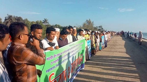 শাহপরীর দ্বীপে বালি উত্তোলনে দ্বীপবাসী আতঙ্কিত,দ্রুত বন্ধের দাবিতে মানববন্ধন!