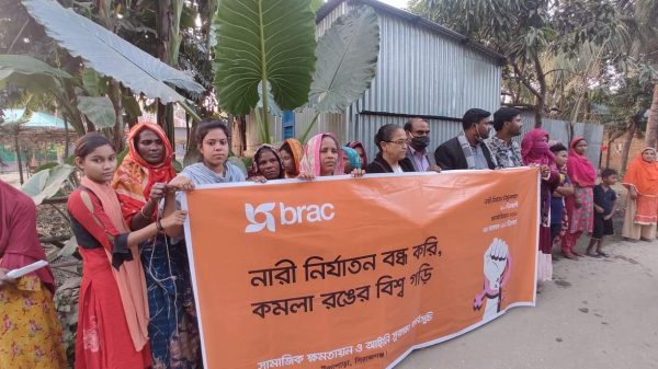 আন্তর্জাতিক নারী নির্যাতন প্রতিরোধে ব্র্যাক’র প্রচার অভিযান ও মানববন্ধন।