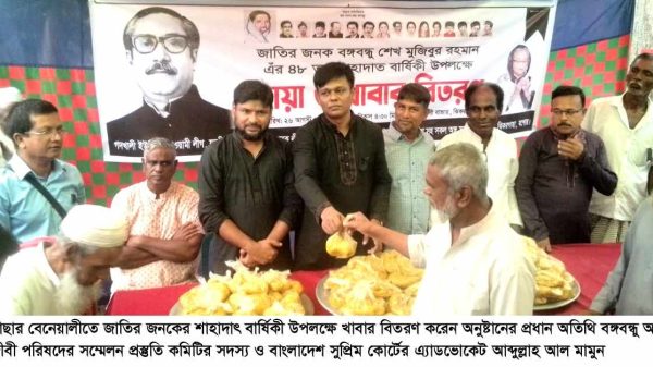 ঝিকরগাছার বেনেয়ালীতে জাতির জনকের শাহাদাৎ বার্ষিকী উপলক্ষে দেয়া ও খাবার বিতরণ।