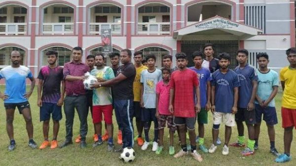 কেশবপুরে সমাজ সেবক রাম গাঁঙ্গুলীর খেলোয়াড়দের মাঝে ৪টি ফুটবল বিতরণ।