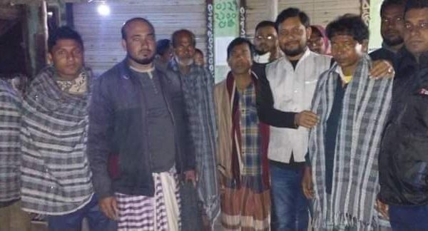তানোরে নৈশ প্রহরীদের মাঝে সমাজসেবক সুজনের শীতবস্ত্র বিতরণ।