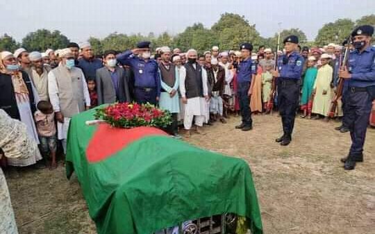 সাপাহারে বীর মুক্তিযোদ্ধা গোলাম রসূলকে রাষ্ট্রীয় মর্যাদায় দাফন।