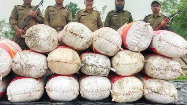 সুন্দরবনে অভিযানে ১৭বস্তা অবৈধ শুটকি জব্দ।