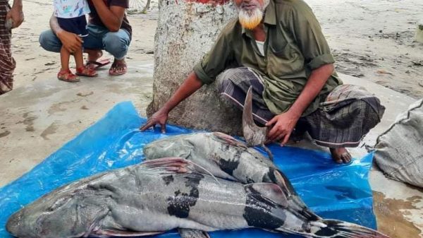 সিংড়ায় ৩১ কেজির বাঘাইর মাছ !
