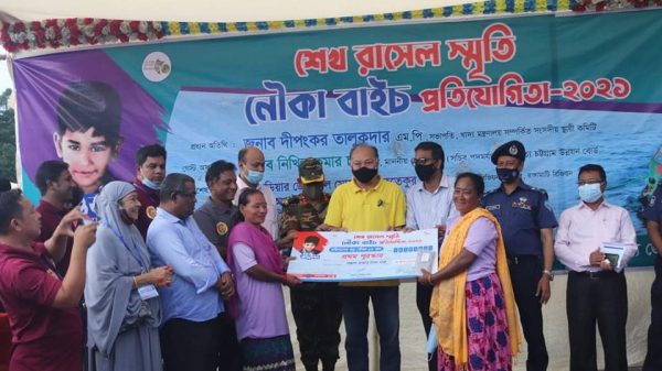 শেখ রাসেলের জন্মদিনে কাপ্তাই হ্রদে নৌকা বাইচ প্রতিযোগিতা।