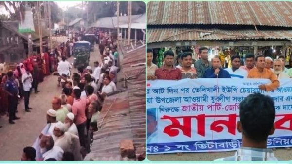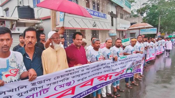 ভান্ডারিয়ায় ইউপি চেয়ারম্যান সহ আ. লীগ নেতাকর্মীদের বিরুদ্ধে মামলা প্রত্যাহার এর দাবিতে মানববন্ধন।