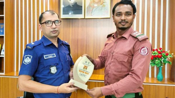 জুড়ী থানার পুলিশের কাছ থেকে শুভেচ্ছা স্মারক পেলেন আল-আমিন।