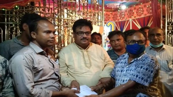 কালিয়ার ৬নং খাশিয়াল ইউনিয়নের পূজা মন্ডপে নৌকার মনোনয়ন প্রত্যাশী সাবেক চেয়ারম্যান ফরিদ আহম্মেদ সিকদারের নগদ অর্থ প্রদান।