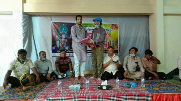 শ্যামনগরে পলিথিনের বিকল্প পাটের ব্যাগ বিতরণ।