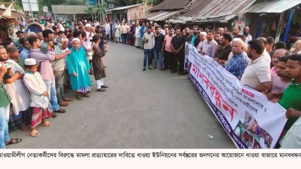 ভান্ডারিয়ায় আওয়ামীলীগ নেতাকর্মীদের বিরুদ্ধে মামলা প্রত্যাহারের দাবিতে মানববন্ধন।