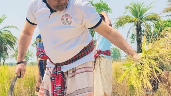 কৃষকের ধান কেটে কৃষকের বাড়ী পৌঁছে দিলেন এমপি জগলুল হায়দার।