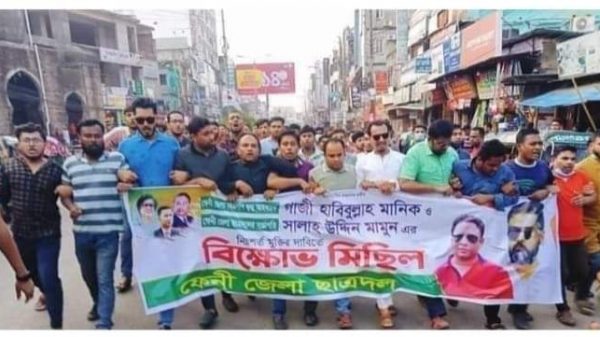 গাজী মানিক এবং মামুনের মুক্তির দাবীতে ফেনীতে বিক্ষোভ মিছিল।