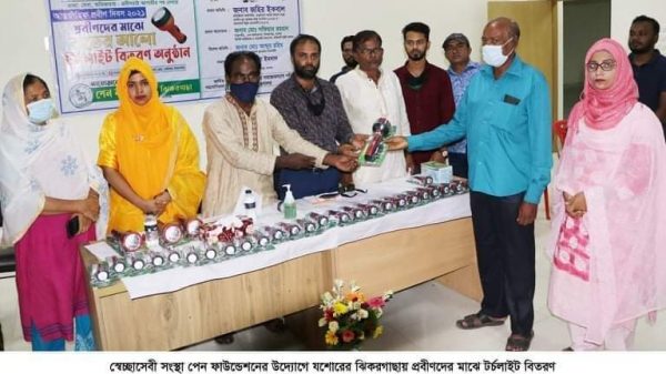 ঝিকরগাছায় ব্যাতিক্রম উদ্যোগ : আন্তর্জাতিক প্রবীণ দিবসে টর্চলাইট বিতরণ।