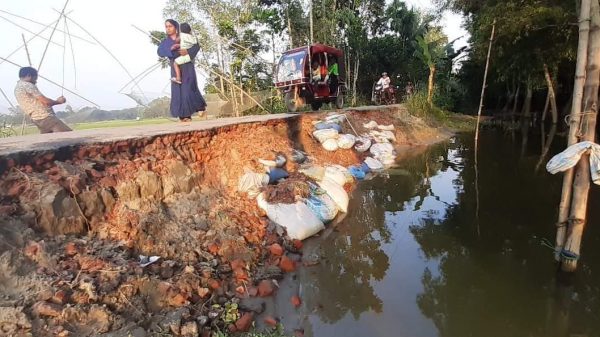 বন্যা পরবর্তী সড়ক ধসে যান চলাচল ব্যাহত।