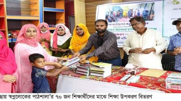 ঝিকরগাছায় স্বপ্নলোকের পাঠশালা’র ৭০ জন শিক্ষার্থীদের মাঝে শিক্ষা উপকরণ বিতরণ।