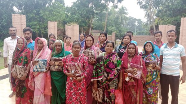 শ্যামনগরে পলিথিনের বিকল্প পাটের ব্যাগ বিতরণ।