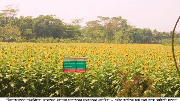 ভান্ডারিয়ায় ১০ টাকায় ৮ হেক্টর জমিতে সূর্যমুখী চাষ প্রকল্প।