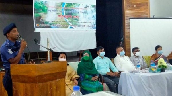 কয়রায় প্লাষ্টিক পলিথিন দূষণ হ্রাস রোধে সভা।