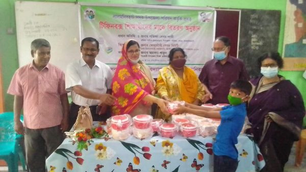 লালমনিরহাট সদর উপজেলা পরিষদ কর্তৃক প্রদত্ত টিফিনবক্স শিক্ষার্থীদের মাঝে বিতরণ।