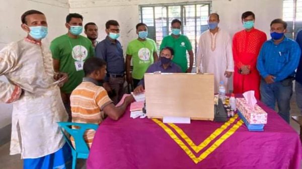 শ্যামনগরে পলিথিনের বিকল্প পাটের ব্যাগ বিতরণ।