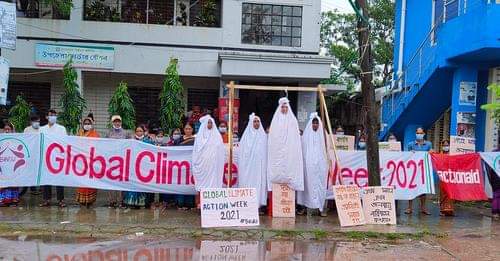 শ্যামনগরে ফাঁসির মঞ্চ তৈরী করে জলবায়ু পরিবর্তনের প্রতিবাদ জানাল যুব নারীরা।