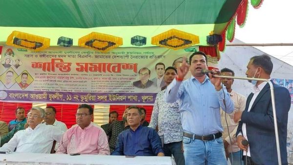ডুমুরিয়া সদর ইউনিয়ন যুবলীগের উদ্যোগে শান্তি সমাবেশ অনুষ্ঠিত হয়।