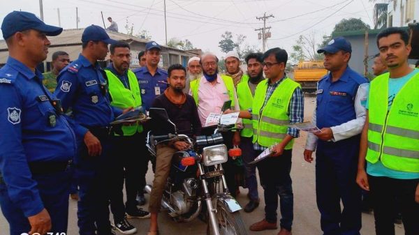 নিরাপদ সড়ক চাই ডুমুরিয়া উপজেলা শাখার লিফলেট বিতরণ।