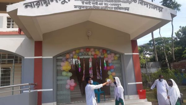 স্বাস্থ্য মেনে নারায়ণপুর বালিকা উচ্চ বিদ্যালয়ে দীর্ঘদিন পর শ্রেণি কার্যক্রম শুরু ।