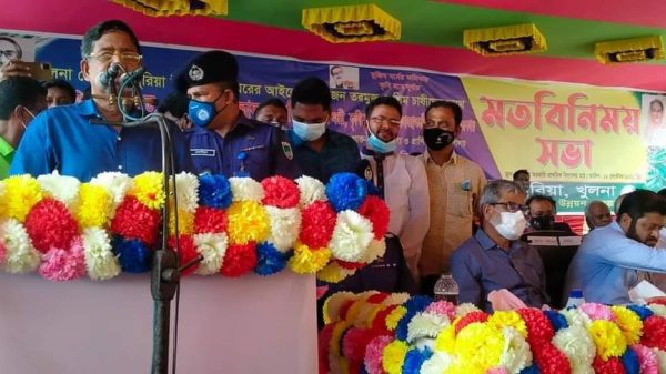 কয়রায় প্লাষ্টিক পলিথিন দূষণ হ্রাস রোধে সভা।