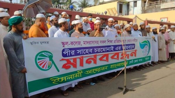 শিক্ষা প্রতিষ্ঠান খুলে দেয়ার দাবীতে ফেনীতে ইসলামী আন্দোলন বাংলাদেশের মানববন্ধন।