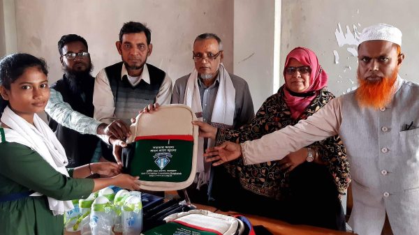 নারায়ণপুর পপুলার বালিকা উচ্চ বিদ্যালয়ে দুদকের শিক্ষা উপকরণ বিতরণ।