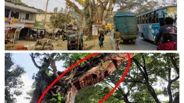 যশোর বেনাপোল মহাসড়কের ঝুঁকিপূর্ণ গাছে বাড়ছে মানুষের মৃত্যুঝুঁকি।