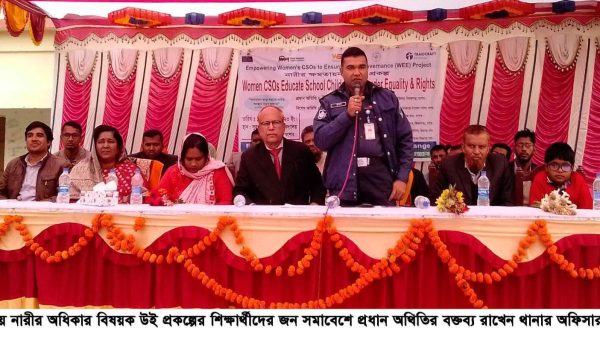 ঝিকরগাছা উপজেলায় নারীর অধিকার বিষয়ক উই প্রকল্পের শিক্ষার্থীদের জন সমাবেশ অনুষ্ঠিত।