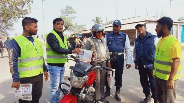 নিরাপদ সড়ক চাই ডুমুরিয়া উপজেলা শাখার লিফলেট বিতরণ।