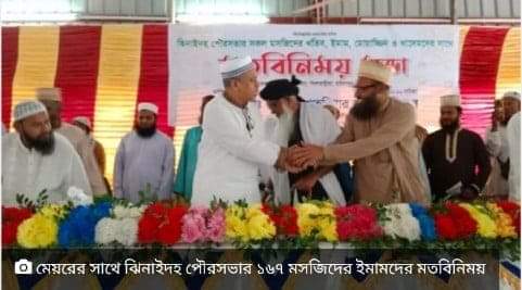 মেয়রের সাথে ঝিনাইদহ পৌরসভার ১৬৭ মসজিদের ইমামদের মতবিনিময়।
