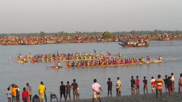 ডুমুরিয়ার মাগুরখালী ঘেংরাইল নদীতে নৌকা বাইচ, সোলাদানা নৌকা দল বিজয়ী।