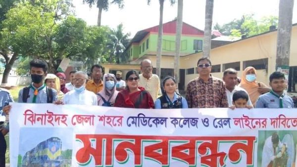 ঝিনাইদহে মেডিকেল কলেজ ও রেললাইন স্থাপনের দাবীতে মানব বন্ধন।