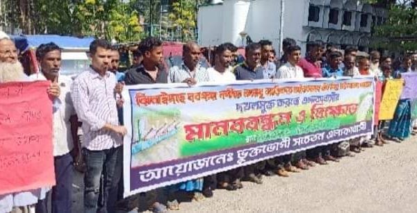 ঝিনাইদহে নবগঙ্গা নদী দখলমুক্ত করার দাবীতে মানববন্ধন।