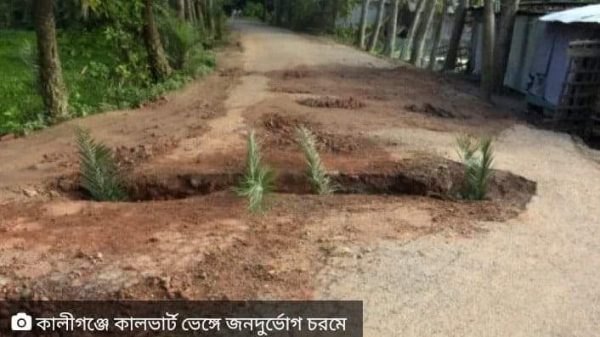 কালীগঞ্জে কালভার্ট ভেঙ্গে জনদুর্ভোগ চরমে।