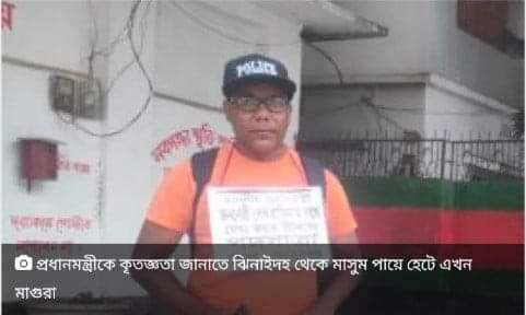 প্রধানমন্ত্রীকে কৃতজ্ঞতা জানাতে ঝিনাইদহ থেকে মাসুম পায়ে হেটে এখন মাগুরা।