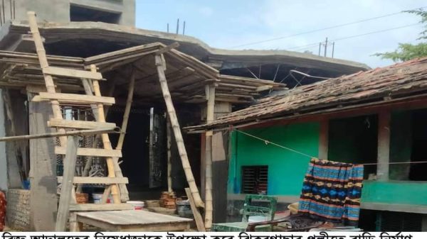 বিজ্ঞ আদালতের নিষেধাজ্ঞাকে উপক্ষো করে ঝিকরগাছার পল্লীতে বাড়ি নির্মাণ।