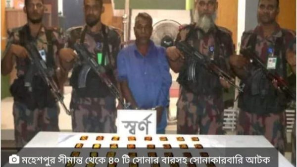 মহেশপুর সীমান্ত থেকে ৪০ টি সোনার বারসহ সোনাকারবারি আটক।